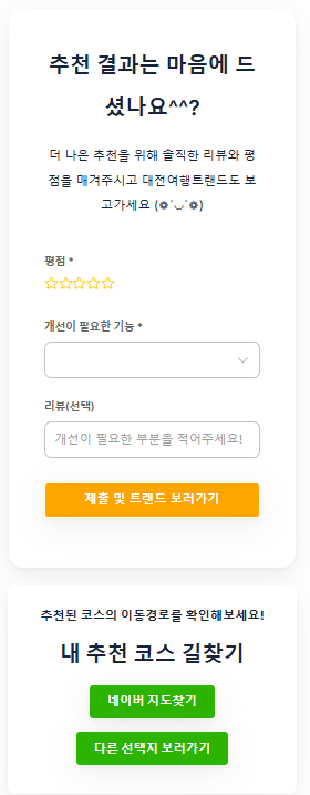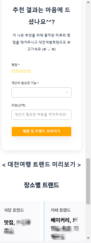 (장소추천결과, UI/UX, 장소정보 추가 등) 개선된 Ver2 페이지에서 UI적 요소로 A/B 테스트 진행예정.