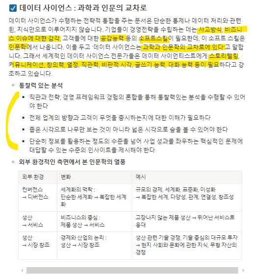 Soft skill: 소통능력 / 통찰력, 설득력, 다분야 간 협력