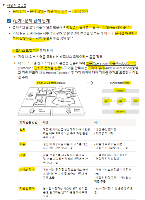상향식 접근법: 데이터에서 문제를 찾는 것 (먼저 분석을 시작하고 그 결과로부터 가치있는 결과 찾는 것)