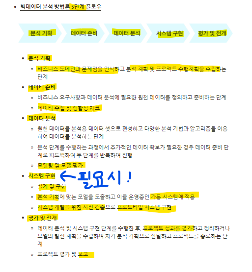 빅데이터 분석 방법론 5단계에서 시스템 구현 단계는 반드시 한다 NO! 필요 시 한다 YES!