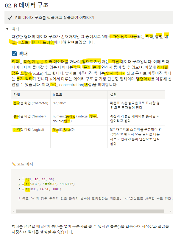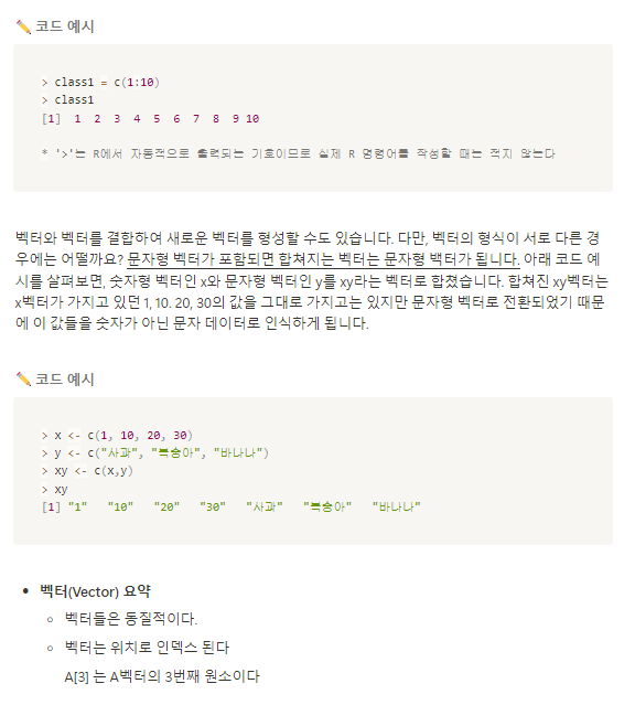 하나의 벡터는 형식이 같다. 숫자벡터, 문자벡터 등