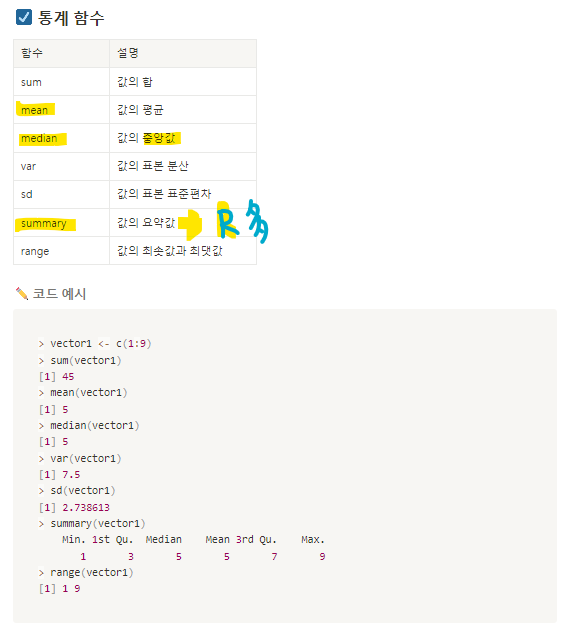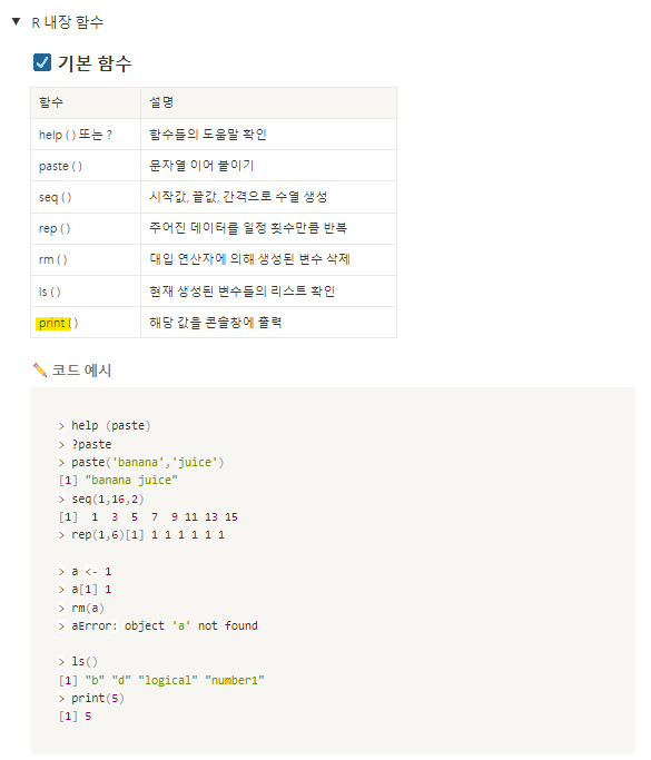 1) 내장 함수 : R이란 언어 자체에 들어있는 함수 (반복적으로 많이 쓰이는 함수)