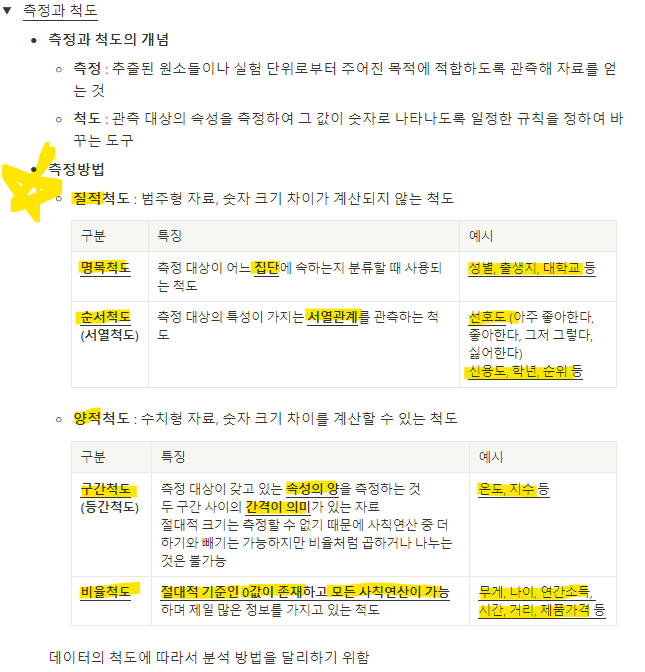 왜 구분 해야하느냐 : 데이터의 척도에 따라서 분석 방법을 달리하기 위해!