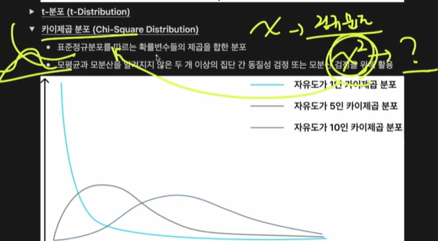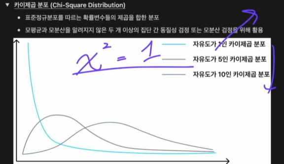 카이제곱 분포 표준정규분포의 분산이 카이스퀘어 분산이다 즉, 표준정규분포의 분산