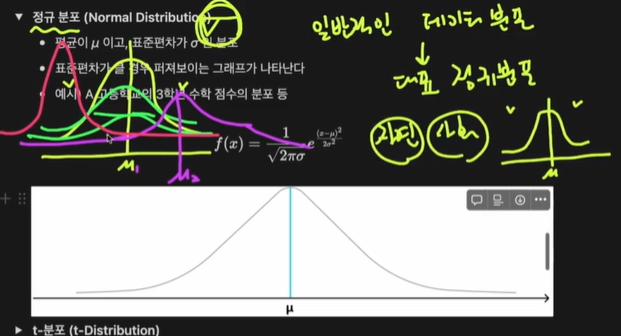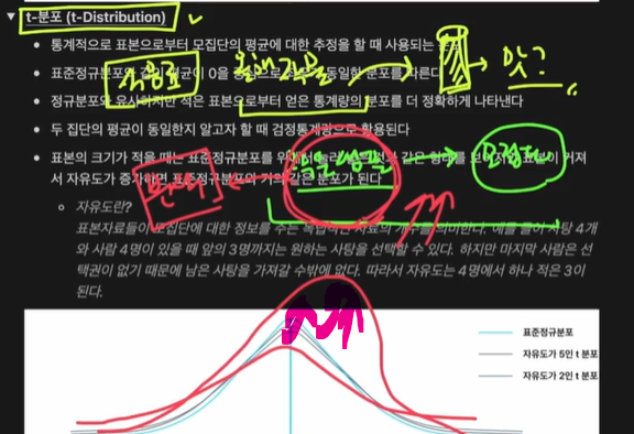 T분포는 정규분포에서 살짝 눌리게 생김.