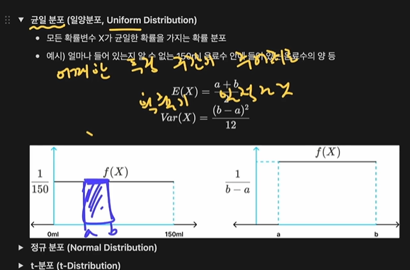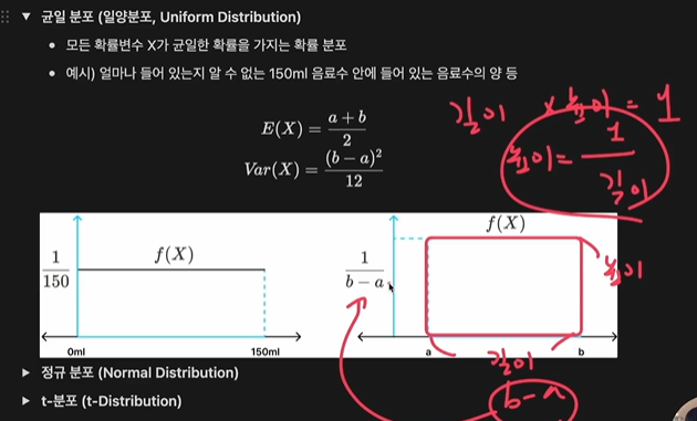 균일분포 (=일양분포): 어떠한 특정 구간이 주어져도 확률이 일정한 것