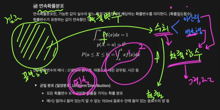 연속형 확률분포 수치의 확률함수 = 확률밀도함수