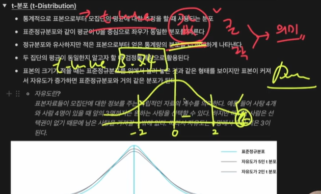 즉, 내가 가진 샘플이 작을수록 t분포에 가까워진다
